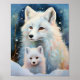 Une peinture d'art moderne représentant une maman renard arctique et son petit blottis l'un contre l'autre dans la neige, avec des coups de pinceau doux et expressifs et une atmosphère hivernale sereine. Cette œuvre d'art touchante capture la beauté de la faune et la tendresse de la famille, ce qui la rend parfaite pour les cartes de vœux, les impressions d'art mural, la décoration de nurserie et les cadeaux saisonniers pleins de sens. Sa palette de couleurs apaisante et sa texture artistique créent une ambiance hivernale paisible qui plaît aux amoureux des animaux, aux passionnés de nature et à quiconque cherche une pièce unique et émouvante pour un cadeau de vacances ou à offrir tout au long de l'année.