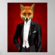 Fox In Sovening Suit, Portrait de Fab Funky. Comprend un renard bien habillé contre un arrière - plan rouge moelleux. | 190731D