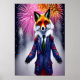 Affiche Renard rouge en uniforme et feu d'artifice | AI Ar