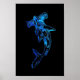 une oeuvre décorative d'un requin marteau nageant dans des tons bleu surréalistes sur un arrière - plan noir en poster.