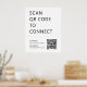 Un simple poster blanc "SCAN QR CODE TO CONNECT". Il vous suffit de scanner le code QR avec votre smartphone pour être amené à votre page de médias sociaux, site communautaire ou plate-forme de réseau désirée. Cette affiche est parfaite pour les événements, les réunions, les groupes, les organisations et les entreprises. C'est également un excellent moyen de fournir à vos clients l'accès Wi-Fi gratuit.
