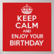 Célébrez dans le style classique avec ce design audacieux "Gardez le calme et profitez de votre anniversaire"! Inspiré par l'affiche britannique intemporelle, cet article rouge vif ajoute humour, charme et plaisir à toute occasion d'anniversaire. Qu’il s’agisse d’une affiche ou d’une carte de voeux, c’est le moyen idéal de diffuser des vibes joyeuses et de faire sourire quelqu’un le jour de leur grand jour.