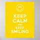 "Conserver le calme et continuer à sourire" est une variante de l'affiche "Conserver le calme et continuer à avancer" utilisée dans la deuxième guerre mondiale. Si vous êtes intéressé, voici l'histoire derrière l'original : youtu.be/s16YLhKzfNI
