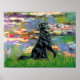 Water Lilies de l'impressionniste Claude Monet (1914), adapté pour inclure un Retrieur à revêtement plat. Un des nombreux tableaux de nénuphars, celui-ci a des nénuphars rouges ou roses vifs dans l'étang. Il a été vendu aux enchères en 2008 pour plus de 70 millions.
