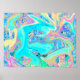 Affiche Retro Aqua Blue Liquid Art sur les Hydrangeas Abst