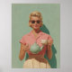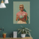 Entrez dans un moment ensoleillé au charme intemporel avec cette oeuvre d'inspiration vintage. Une femme au pois, habillée d'une manière du milieu du siècle avec un chemisier rose rose, en vichy jupe et collier de perles, se dresse contre un mur turquoise pastel. Ses boucles blondes classiques et ses lunettes de soleil pour chat font écho à l'élégance des années 1950. Elle tient une théière verte à la menthe et une tasse de thé appétissante, suggérant un thé de l'après-midi imprégné de glamour rétro. Cette image capture la grâce et le raffinement d'une époque révolue, parfait pour les amateurs de style vintage, de mode rétro et de décoration nostalgique. Idéal pour les imprimés, les affiches et les accessoires de style de vie, cette pièce apporte une ambiance chaleureuse et élégante à tout espace ou produit. Que ce soit pour la conception d'articles de cuisine, de déco maison ou de papeterie élégante, ce design évoque un raffinement calme et un charme gai.
