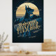 Striking retro-style poster design of a Doberman Pinscher with a background of mountains and large sun graphic all in a striking color palette of gold through prussian blue. A large decorative font names the dog breed. Search ID754 to see other color options and additional dog breeds in this style.