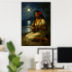 Affiche Retro Hawaiian Girl & Ukulele On A Moonlit Beach