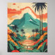 Affiche Retro Jungle Illustration Vert Rouge