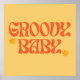 Police à thème des années 70 rétro en moutarde et orange et les mots "bébé super".