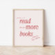Poster minimal Retro Typographie Livre Lover Imprimer. Concevez une chambre ou un espace de vie avec cette impression murale simple et rétro "lire plus de livres", idéale pour les amateurs de livres. *Texte dans le script : "Étendez votre esprit", "apprenez, grandissez", et "Un livre par jour garde la réalité loin".