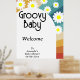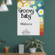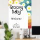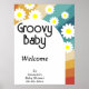 Super Baby Retro inspiré baby shower fête avec marguerites de style 70's et polices et couleurs boho. Éléments correspondants disponibles.
