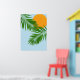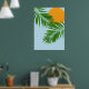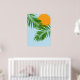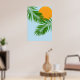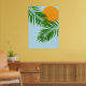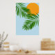 Cette affiche présente un design élégant et minimaliste avec un soleil tropical derrière des feuilles de palmiers sur un arrière - plan bleu ciel.