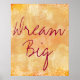 Rêve Motivationnel Grosse Citation Affiches. Cool, unique arrière - plan de grunge orange en détresse avec les mots inspirants / citation 'dream big' avec des accents de lumière bokeh autour des bords.