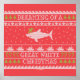 Pour votre décor de vacances : Cette affiche est décorée dans un style de pull moche sur un arrière - plan rouge festif (couleur arrière - plan personnalisable). Sur le dessin : "Dreaming of a Great White Christmas" (Rêver d'un grand Noël blanc), on y trouve un chapeau de Père Noël portant du requin, des vagues, des bateaux, des cadeaux, des arbres, des sucres de canne, des petits poissons et toutes sortes de décorations de vacances.