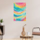 Ce design abstrait et vibrant capte l'essence d'un paradis tropical ensoleillé. Des vagues tortueuses de turquoise, rose, jaune et verte créent une composition dynamique en couches qui rappelle les mares colorées et les surfaces océaniques scintillantes. Des motifs de points, de zigzags et de formes organiques dansent à travers la surface, évoquant les diverses textures et formes de vie des récifs coralliens. La palette de couleurs chaudes et énergiques évoque des journées d’été paresseuses, des vacances exotiques et la beauté fascinante des écosystèmes les plus colorés de la nature.
