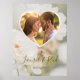 Célébrez une belle union avec cette affiche de mariage romantique présentant une photo douce et délavée de rose blanche par Destei. Un modèle de photo en forme de cœur vous permet de mettre en valeur la photo préférée du couple avec des noms personnalisables et la date du mariage ci-dessous. Ce design élégant fait un beau panneau de bienvenue, une décoration de zone de photo ou un présentoir de souvenir pour la maison des jeunes mariés. Une touche intemporelle et gracieuse pour les célébrations de mariage et au-delà.