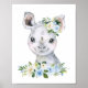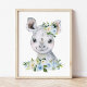 Affiche Rhinocéros, Safari, Jungle, Fleurs Bleues, Garçon