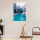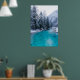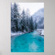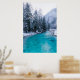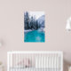 Photo de paysage d'une rivière magique bleue dans une forêt d'hiver enneigée.