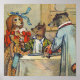 Illustration ancienne - Chiens habillés convenablement pour le dîner - Cette douce image vintage d'un chien heureux savourant son repas est un merveilleux cadeau pour les amoureux des chiens. La chienne porte une belle robe victorienne longue et colorée, et elle porte un chapeau pour chien. Le beau chien a un nœud bleu vif sur son chapeau et porte de grands nœuds rouges sur sa robe, juste pour faire sentir la petite chienne féminine et elle est si jolie ! La chienne a les oreilles longues, tandis que son compagnon canin mâle a les oreilles courtes. Le chien garçon savoure un repas de jambon pour chien, assis convenablement à la table victorienne pour chiens, mangeant avec ses mains et des couverts, comme un véritable chien victorien. Regardez - il dit à la chienne combien son café est merveilleux ! Ce chien porte une jolie veste verte et a glissé sa serviette dans son col pour ne pas se tacher sur son beau costume de chien. Le chien garçon regarde amoureusement sa serveuse féminine, comme pour dire : "merci pour le merveilleux repas de chien. Vous êtes une cuisinière merveilleuse !" Quelle illustration amusante. Les Victoriens aimaient donner à leurs animaux des caractéristiques humaines et les habiller de vêtements humains, du moins dans leurs illustrations.