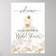 Moderne Mariée Cheveux Blonds Robe de Mariée Paillettes Or Blanc Élégant Écriture Calligraphie Cœur Enterrement de vie de jeune fille Panneau de Bienvenue