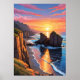 Découvrez la beauté unique des rochers de crêpes de Punakaiki avec cette oeuvre captivante. La scène met en lumière les fascinantes formations calcaires en couches qui ressemblent à des piles de crêpes, sculptées sur des millions d'années par les vagues incessantes de l'océan.