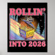 Affiche Rollin' Into 2026 Funny Raccoon Meme Happy New Yea