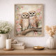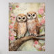 Affiche Romantic Owl Pair Floral Nature Cottage