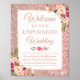 Rose Gold Parties scintillant Floral - Bienvenue à Unplugged Mariage Sign Poster. (1) La taille par défaut est de 8 x 10 pouces, vous pouvez la changer à n'importe quelle taille. (2) Pour plus de personnalisation, cliquez sur le lien "customiser plus loin" et utilisez notre outil de conception pour modifier ce modèle. (3) Si vous avez besoin d'aide ou d'articles correspondants, veuillez me contacter.