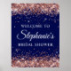 Affiche Rose Gold Glitter Navy Bridal Shower Welcome