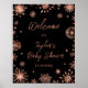 Affiche Rose Gold Snowflakes Baby shower Bienvenue
