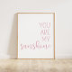You Are My Sunshine, une citation de typographie minimaliste dans une texture rose en détresse, parfaite pour la décoration de bébé nurserie, les tentures de chambre d'enfants ou les petites peintures murales de salle de jeux pour enfants.