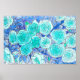 Affiche Roses Bleus, Vert Feuille Rose Jardin Fleur été