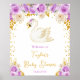 Affiche Roses cygne violet et or Baby shower Bienvenue