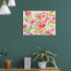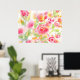 Poster art imprimer roses abstraits en rose, jaune, vert et blanc, à partir de peinture originale aquarelle.