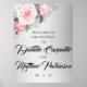 Une affiche de bienvenue (affiche) en argent argenté et élégante couleur argentée métallique, avec un magnifique bouquet rose de roses dans le coin supérieur. Cette affiche serait appropriée pour accueillir vos invités à la fois à la réception de mariage ou à l'église.