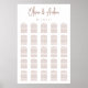 Le tableau de sièges d'invités mariages présente vos noms dans des lettres manuscrites modernes, avec votre date de mariage et les assignations de tables d'invités en dessous. Espace prévu pour 25 tables maximum. Coloris : Rouille, un ton terre chaud couleur terre-cuite brun.