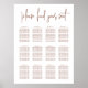 Le tableau de sièges d'invités mariages présente vos noms dans des lettres manuscrites modernes, avec votre date de mariage et les assignations de tables d'invités en dessous. Espace prévu pour 12 tables maximum. Coloris : Rouille, un ton terre chaud couleur terre-cuite brun.