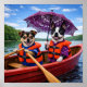 Luna the Boston Terrier and Louie the JackChi are enjoying the lake, rowing to the other side. Good for them for wearing life preservers!