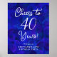 Elégante Royal Blue Cheers to 40 Years 40th Birthday Poster Afficher cette Elégante Royal Blue Message Poster à l'entrée de la fête d'anniversaire de jalon spécial. Le texte est entièrement personnalisable afin que vous puissiez personnaliser le message parfait à vos invités. Magasinez notre magasin pour plus de matériel de planification et de décoration de fête!