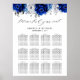 Elégant tableau de sièges mariage à thème bleu royal blanc argenté avec élégant bouquet de bleu royal, marine, argent, couleur blanche pure bourgeons de fleurs roses et sauge vert eucalyptus feuilles. Veuillez me contacter pour toute aide sur la personnalisation ou si vous avez besoin d'un autre produit avec ce design.