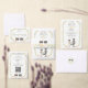 Cette charmante collection de faire-part de mariage est composée d'un couple de ratons de hip-hop entouré d'une jolie guirlande de feuilles dessinés à la main dans un agencement rustique de couronne.