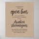 Our Wedding has an Open Bar, it is also being heavily photographed. So all Drunken Shenanigans will be well Document and Thoroughly mocked for years to come poster, in modern rustic design, brown kraft background theme.