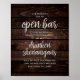 Affiche Rustic Wedding Open Bar, Drunken Shenanigans