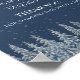 An elegant sign to welcome your guests to your rustic winter wedding with a snow covered country forest at night in navy blue and white.