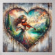 Cette affiche présente une scène en bois rustique avec une fille jouant du violon à l'intérieur d'un coeur sculpté. Parfait pour les amateurs de musique et les amoureux du pays.
