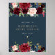 Affiche Rustique Bourgogne et Marine Floral Sweet 16 Bienv