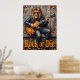 Cette oeuvre d'art dynamique représente un lion, qui a l'air sans effort cool dans les lunettes de soleil et une veste en cuir, "déchiquetant" magistralement une guitare électrique tout en étant assis sur une corniche en bois usée. La toile de fond est un mur en bois richement texturé, orné de feuilles d'automne éparpillées. L'impasto épais et expressif crée une texture tangible, faisant résonner la déclaration "Rock or Die" avec l'énergie brute de la performance.