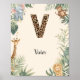 Affiche Safari Jungle Personalized Name Monogram V Nursery