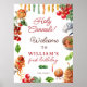 Un panneau d'accueil d'inspiration italienne amusant et festif avec des pâtes à l'aquarelle, des tomates, du basilic et des illustrations de spaghettis ludiques. Le titre joyeux "Saint Cannoli !" rend ce panneau parfait pour la célébration du premier anniversaire d’un petit. Disponible en plusieurs tailles, ce design fonctionne joliment affiché à l'entrée, table de desserts ou table de faveur. Idéal pour les parents qui souhaitent ajouter une touche thématique à la fête de leur enfant. Un charmant gardien pour se souvenir de leur célébration marquante.